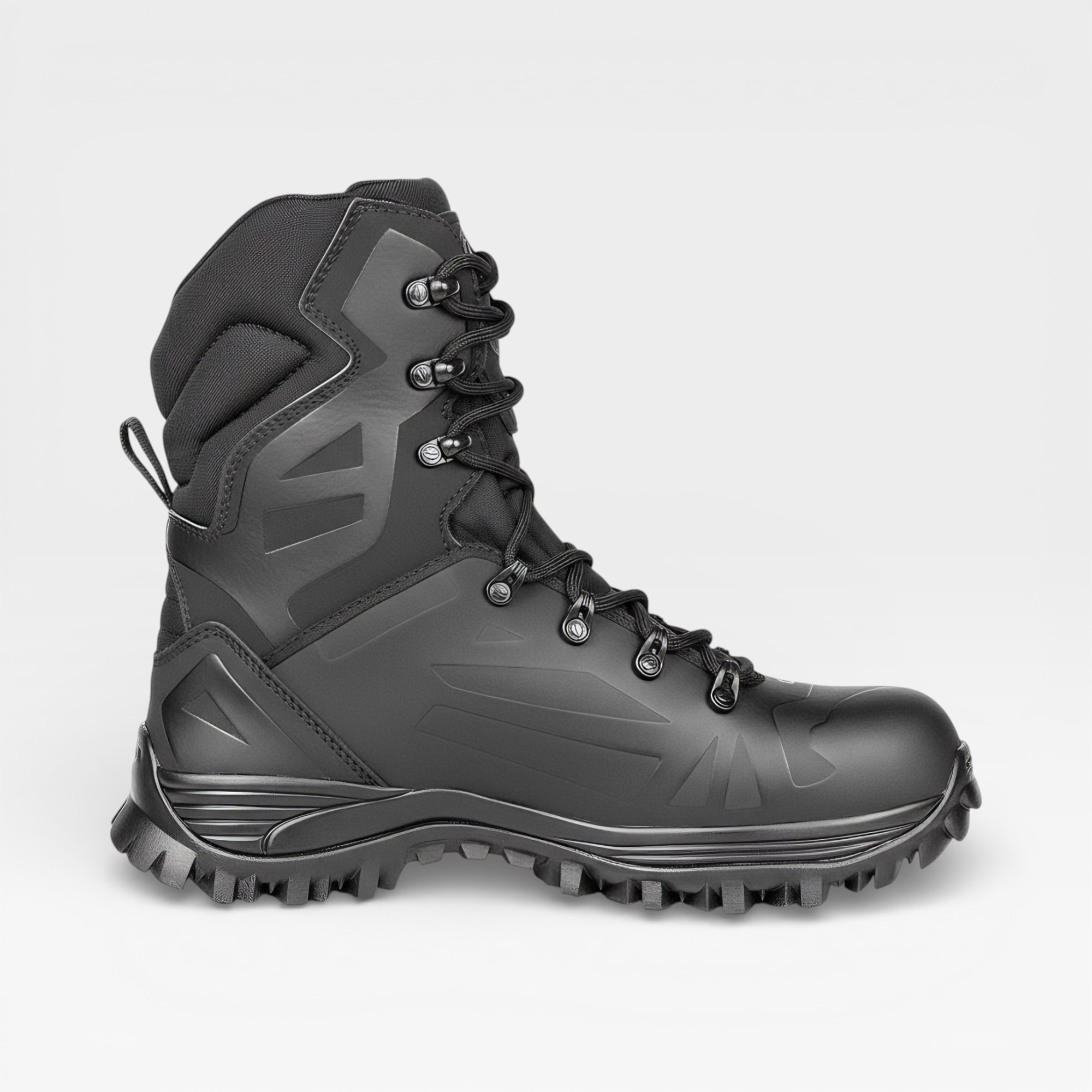 O calçado apresenta uma estética inovadora para uma bota militar, com estrutura desenvolvida em material de alta tecnologia com aplicação de NANOFILM, resultando em um cabedal extremamente resistente, leve e confortável. A construção SEAMLESS (sem costuras) na maior parte da estrutura proporciona um ajuste preciso, minimizando pontos de atrito. O cano é confeccionado em Cordura acolchoada, oferecendo maior conforto e flexibilidade. Passadores em polímero de alta resistência são firmemente fixados ao cabedal, assegurando amarração estável. O cadarço com “alma dupla” possui reforço interno que aumenta a durabilidade do conjunto.